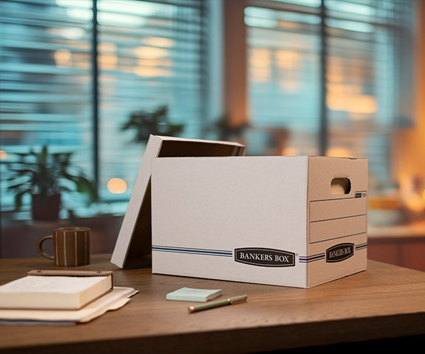 Que vos dossiers soient placés sur des étagères ou que les boîtes soient empilées au sol, Bankers Box fournit la robustesse nécessaire pour satisfaire vos besoins d’entreposage.