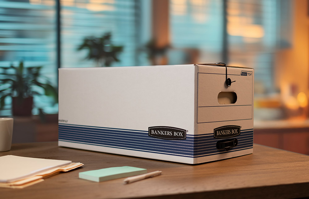 Que vos dossiers soient placés sur des étagères ou que les boîtes soient empilées au sol, Bankers Box fournit la robustesse nécessaire pour satisfaire vos besoins d’entreposage.